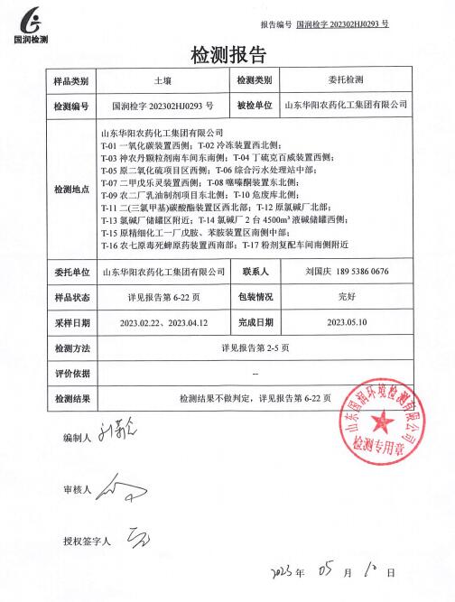 公司動態(tài) 首頁 > 華陽新聞 > 公司動態(tài) > 列表 山東華陽農(nóng)藥化工集團(tuán)有限公司土壤檢測報告 附件:山東華陽農(nóng)藥化工集團(tuán)有限公司土壤檢測報告.pdf